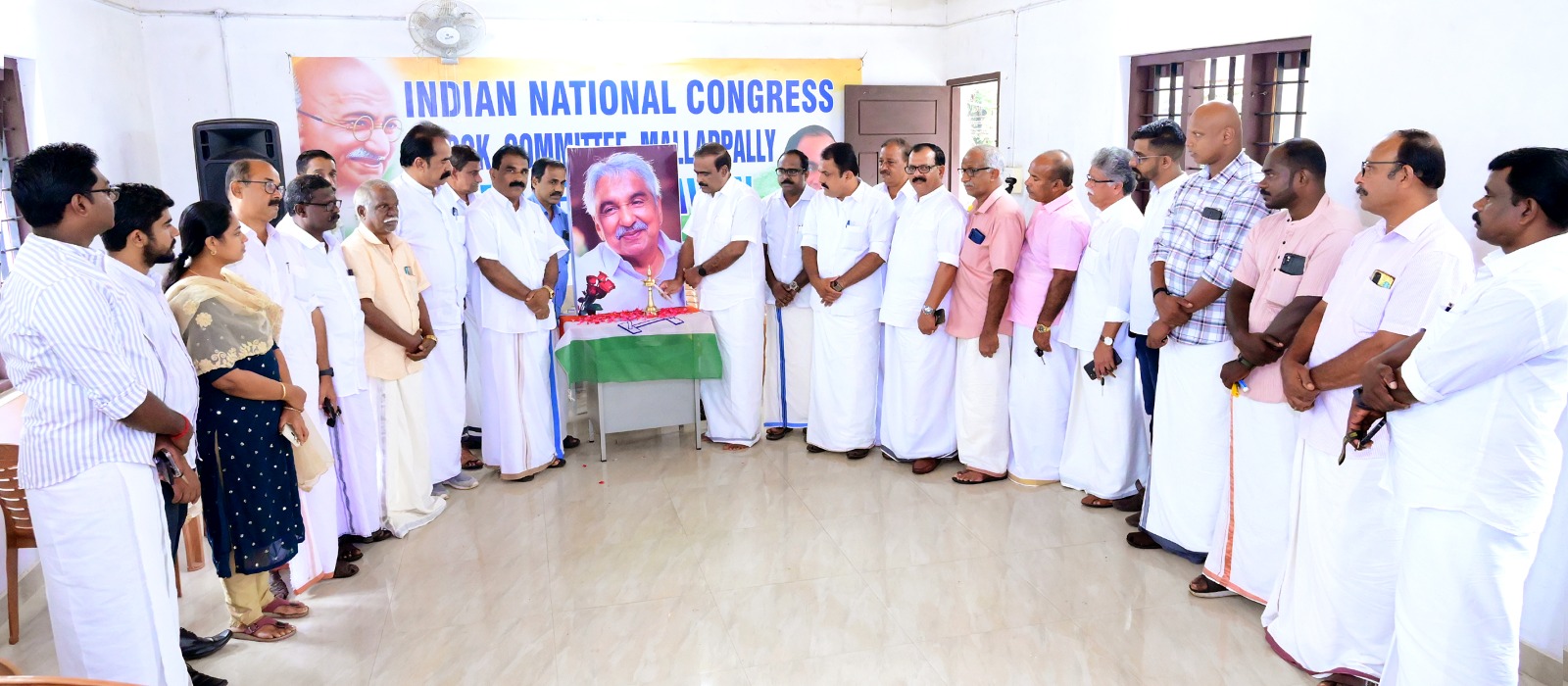 മല്ലപ്പള്ളികോൺഗ്രസ് ബ്ലോക്ക് കമ്മറ്റിയുടെ നേതൃത്വത്തിൽ നടത്തിയ മുൻ മുഖ്യമന്ത്രി ഉമ്മൻ ചാണ്ടിയുടെ രണ്ടാം ചരമവാർഷിക ദിനാചരണം കെപിസിസി മുൻ എക്സിക്യൂട്ടീവ് അംഗം അഡ്വ. റെജി തോമസ് ഉദ്ഘാടനം ചെയ്തു. കോൺഗ്രസ് ബ്ലോക്ക് പ്രസിഡന്റ് എബി മേക്കരിങ്ങാട്ട് അധ്യക്ഷത വഹിച്ചു. ഡിസിസി ജനറൽ സെക്രട്ടറി കോശി പി സക്കറിയ, ഇൻകാസ് ഖത്തർ ട്രഷറര് ഈപ്പൻ തോമസ്, ഡിസിസി അംഗം കീഴ് വായ്പൂര് ശിവരാജൻ, റെജി പണിക്കമുറി, അഡ്വ. സാം പട്ടേരി, ചെറിയാൻ മണ്ണഞ്ചേരി, കെ ജി സാബു, റെജി പമ്പഴ, കെ പി സെൽവകുമാർ, കൃഷ്ണൻകുട്ടി മുള്ളൻകുഴി, സിന്ധു സുബാഷ്, ബാബു കുറുമ്പേശ്വരം, അനീഷ് കെ മാത്യു, വിഷ്ണു പുതുശേരി, മിഥുൻ കെ ദാസ്, സുനിൽ കൊച്ചേരി, ബാബു താന്നിക്കുളം തുടങ്ങിയവർ പ്രസംഗിച്ചു.