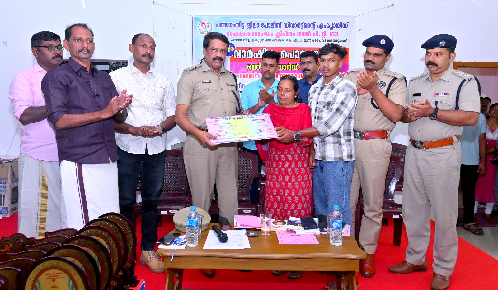 മരണമടഞ്ഞ കെ എ പി മൂന്നാം ബറ്റാലിയനിലെ ജീവനക്കാരൻ രാജന്റെ കുടുംബത്തിന് പോലീസ് സൊസൈറ്റിയുടെ ഇൻഷുറൻസ് തുകയായ 5 ലക്ഷം രൂപയുടെ ചെക്ക് അദ്ദേഹം കുടുംബത്തിന് കൈമാറി. എസ്എസ്എൽസി പ്ലസ് ടു പരീക്ഷകളിൽ ഉന്നത വിജയം നേടിയ സംഘാoഗങ്ങളുടെ മക്കൾക്കുള്ള ഉപഹാരവും ക്യാഷ് അവാർഡും ജില്ലാ പോലീസ് മേധാവി വിതരണം ചെയ്തു. മുഖ്യമന്ത്രിയുടെ പോലീസ് മെഡലിന് അർഹരായ തിരുവല്ല ഡി വൈ എസ് പി എസ് അഷാദ് ഉൾപ്പെടെയുള്ള ജില്ലയിലെ 5 പോലീസുദ്യോഗസ്ഥരെ അഡീഷണൽ എസ്പി ചടങ്ങിൽ ആദരിച്ചു. തുടർന്ന്, സൊസൈറ്റിയുടെ വാർഷിക പൊതുയോഗവും നടന്നു.