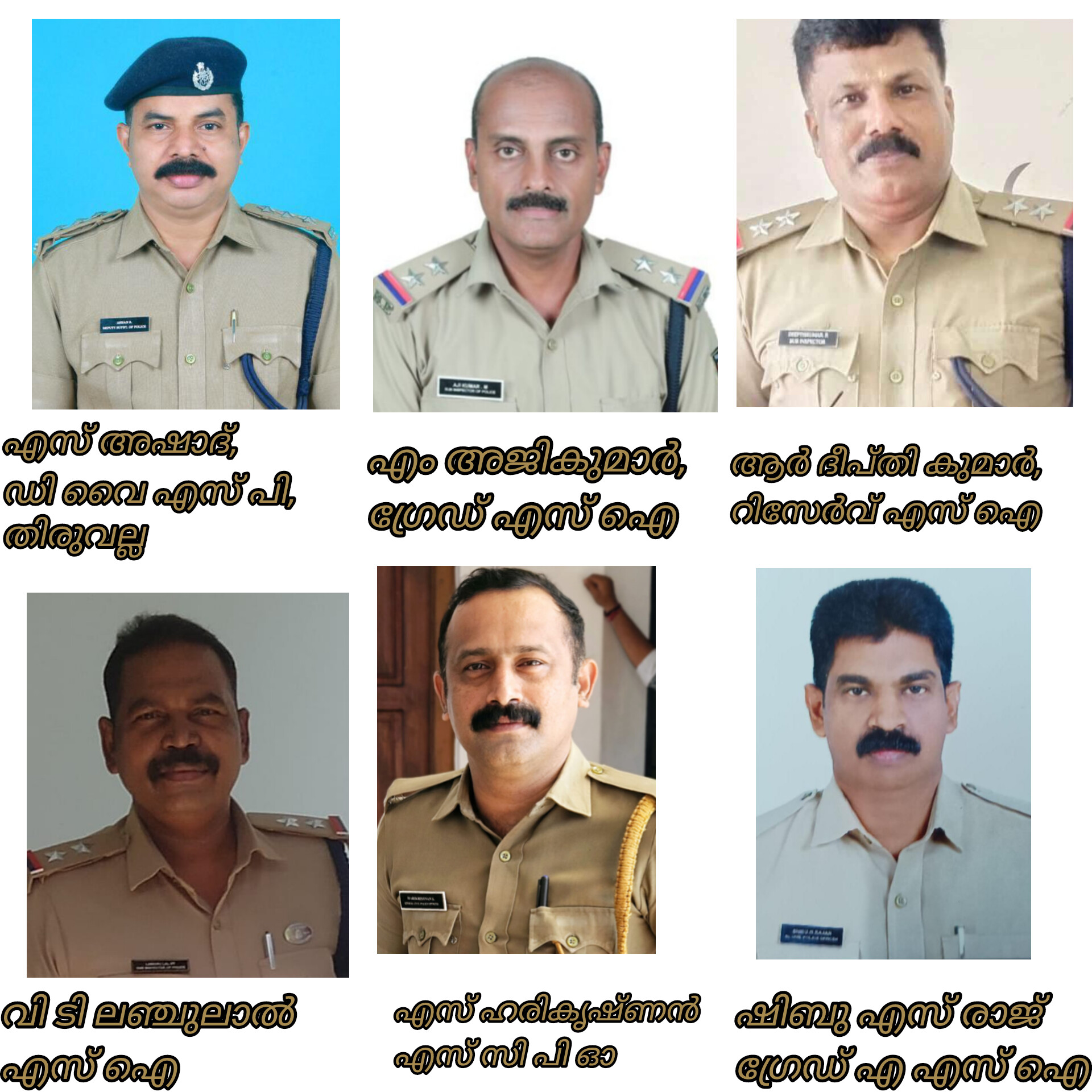 തിരുവല്ല ഡി വൈ എസ് പി എസ് അഷാദ് 2003 മേയിൽ സബ് ഇൻസ്പെക്ടറായി പോലീസ് സർവീസിൽ പ്രവേശിച്ചു. 2020 ൽ ഡി വൈ എസ് പി ആയി, എറണാകുളം വിജിലൻസ്, പത്തനംതിട്ട ഇൻറലിജൻസ് എന്നിവിടങ്ങളിൽ ജോലി നോക്കി. ചെങ്ങന്നൂർ സ്വദേശിയാണ്.