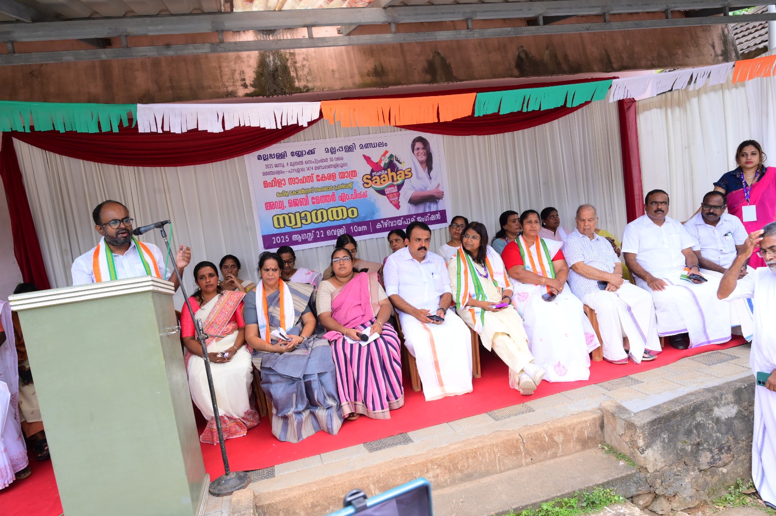 മഹിളാ കോൺഗ്രസ് സംസ്ഥാന പ്രസിഡന്റ് അഡ്വ. ജെബി മേത്തർ എം പി നയിക്കുന്ന മഹിളാ സാഹസ് കേരള യാത്രക്ക് മഹിളാ കോൺഗ്രസ് മല്ലപ്പള്ളി മണ്ഡലം കമ്മറ്റി നൽകിയ സ്വീകരണം കെപിസിസി സെക്രട്ടറി റിങ്കു ചെറിയാൻ ഉദ്ഘാടനം ചെയ്തു. മഹിളാ കോൺഗ്രസ് മണ്ഡലം പ്രസിഡന്റ് ബിന്ദു മേരി തോമസ് അദ്ധ്യക്ഷത വഹിച്ചു. മഹിളാ കോൺഗ്രസ് സംസ്ഥാന പ്രസിഡന്റ് അഡ്വ. ജെബി മേത്തർ എം പി, ജില്ലാ പ്രസിഡന്റ് രജനി പ്രദീപ്, അഡ്വ. റെജി തോമസ്, എലിസബേത്ത് അബു. കോശി പി സക്കറിയ, ജി സതീഷ് ബാബു, സജി കോട്ടക്കാട്ട്, എബി മേക്കരിങ്ങാട്ട്, ലാലി ജോൺ, സുധാ നായർ,, വിബിത ബാബു, മഞ്ജു വിശ്വനാഥ്, ആശാ തങ്കപ്പൻ, ഷൈബി ചെറിയാൻ, എം കെ സുബാഷ് കുമാർ, സിന്ധു സുബാഷ്, ജ്ഞാനമണി മോഹനൻ, റെയ്ച്ചൽ മാത്യു, ലീല രാജൻ, അനിത ചാക്കോ, കെ ജി സാബു, റ്റി ജി രഘുനാഥപിള്ള, ഡോ. ബിജു റ്റി ജോർജ്, റെജി പമ്പഴ, കൃഷ്ണൻകുട്ടി മുള്ളൻകുഴി, ബാബു തന്നിക്കുളം, അനു ഊത്തുകുഴി, വിജയലക്ഷ്മി അമ്മാൾ, റ്റി കെ ബാലമണി, ഷേർലി സജി തുടങ്ങിയവർ പ്രസംഗിച്ചു.