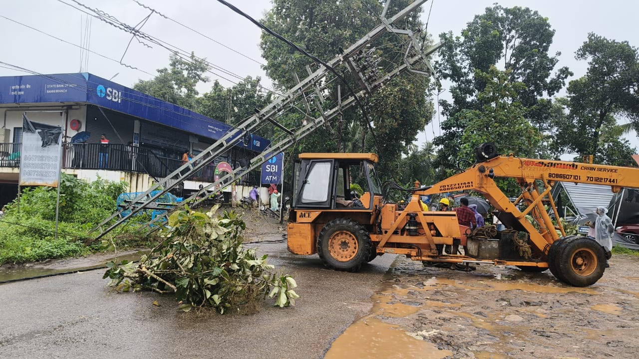 താലൂക്കിലെ വിവിധ ഇടങ്ങളില് വൈദ്യുതി ബന്ധം താറുമാറായി.ചെറുകുളഞ്ഞി ആറ്റുഭാഗം റോഡിൽ മുല്ലശ്ശേരി പടിയിൽ തേക്ക് മരം വീണ് വൈദ്ധ്യുത തൂൺ ഒടിഞ്ഞു വീണു.