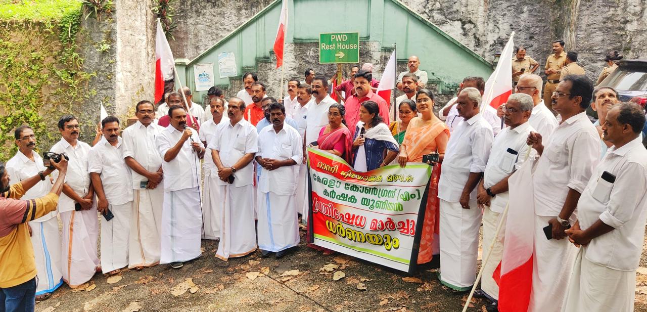 കേരള കോൺഗ്രസ്(എം) പത്തനംതിട്ട ജില്ലാ പ്രസിഡന്റ്.സജി അലക്സ് പ്രതിഷേധ ധർണ്ണ ഉദ്ഘാടനം ചെയ്തു. കേരള കോൺഗ്രസ് (എം) റാന്നി നിയോജകമണ്ഡലം പ്രസിഡന്റ് . ജോർജ് എബ്രഹാം അധ്യക്ഷത വഹിച്ചു. ജില്ലാ ജനറൽ സെക്രട്ടറി എബ്രഹാം വാഴയിൽ മുഖ്യപ്രഭാഷണം നടത്തി. സംസ്ഥാന കമ്മിറ്റി അംഗങ്ങളായ ഡോ. വർഗീസ് പേരയിൽ, ബഹനാൻ ജോസഫ്, റോസമ്മ സ്കറിയ,ജില്ലാ സെക്രട്ടറി ബിബിൻ കല്ലമ്പറമ്പിൽ, പോഷക സംഘടന നേതാക്കളായ അഡ്വ. ബോബി കാക്കനാപള്ളിൽ,റിന്റോ തോപ്പിൽ,ലിജോ വാളനാംകുഴി,എം സി ജയകുമാർ,തോമസ് മോടി, എജി നാരങ്ങാനം, നിയോജക മണ്ഡലം ഭാരവാഹികളായ ടോമ്മി വടക്കേമുറിയിൽ , രാജു ഇടയാടി, സാബു കുറ്റിയിൽ,ബാബു അന്ത്യാൻകുളം,ടിബു പുരക്കൽ ,മണ്ഡലം പ്രസിഡന്റുമാരായ സണ്ണി ഇടയാടി,ടോമ്മി പാറകുളങ്ങര,ദിലീപ് ഉതിമൂട്,ജോസ് പാത്രപാങ്കൽ,രാജീവ് തുലപ്പള്ളി,ശോഭന എൻ എസ്, മാത്തുക്കുട്ടി നൊച്ചുമണ്ണിൽ,കോശി മാത്യു, ഗ്രാമപഞ്ചായത്ത് അംഗങ്ങളായ ജിജി പി എബ്രഹാം, ശോഭ ചാർലി, ജോമോൻ ജോസ്, അജിമോൾ നെല്ലുവേലിൽ എന്നിവർ പ്രസംഗിച്ചു.