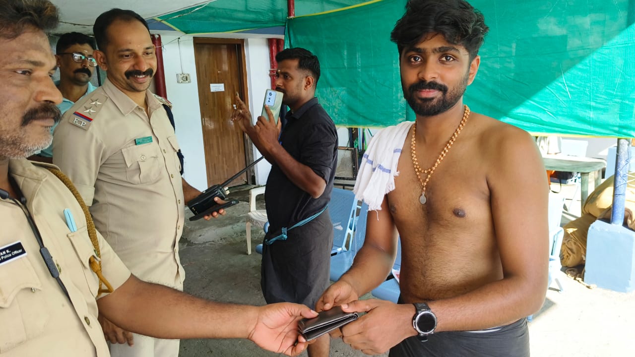കർണാടക സ്വദേശിയായ അയ്യപ്പഭക്തന്റെ നഷ്ടപ്പെട്ട പണം അടങ്ങിയ പേഴ്സ് പോലീസ് കണ്ടെത്തി നൽകി