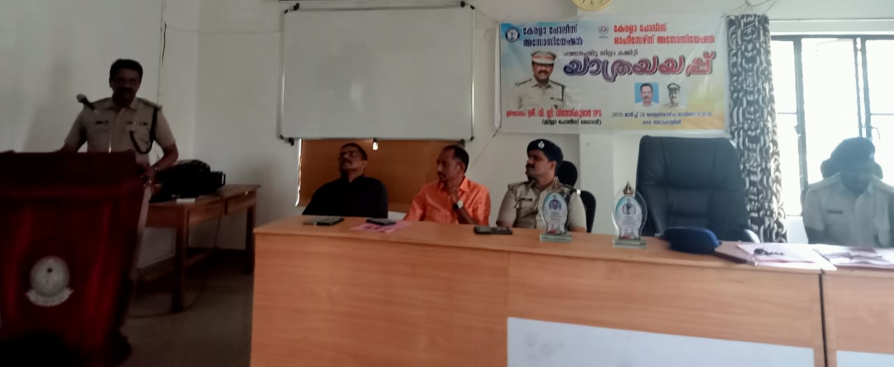 ചടങ്ങിൽ കെപിഎ ജില്ലാ പ്രസിഡണ്ട് വി പ്രദീപ് അധ്യക്ഷനായി. വിരമിക്കുന്ന ഇരുവർക്കും ജില്ലാ പോലീസ് മേധാവി ഉപഹാര സമർപ്പണവും നടത്തി. സ്വാഗതം കെ പി ഓ എ ജില്ലാ സെക്രട്ടറി കെ ബി അജി പറഞ്ഞു. അഡീഷണൽ എസ്പി ആർ ബിനു മുഖ്യപ്രഭാഷണം നടത്തി. ജില്ലാ ക്രൈംബ്രാഞ്ച് ഡിവൈഎസ്പി കെ എ വിദ്യാധരൻ, ഡി എച്ച് ക്യു എസ് ഐ ഹരികുമാർ എന്നിവർ ആശംസകൾ നേർന്നു. കെപിഎ സംസ്ഥാന നിർവാഹകസമിതി അംഗം എൻ അനീഷ് കൃതജ്ഞത പറഞ്ഞു